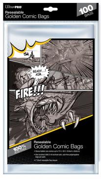 Ultra clear, archival-safe comic bags designed to fit Golden Age size comics up to 7-3/4" x 10-1/2" in dimension. 100 per pack, acid-free and no PVC.
