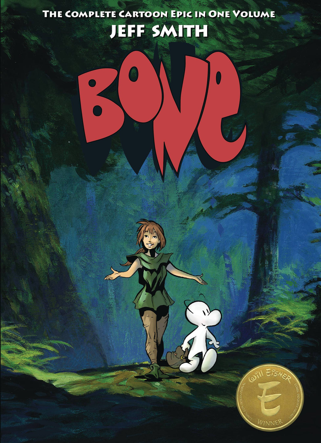 Meet the Bone cousins, Fone Bone, Phoney Bone and Smiley Bone, three misfits who are run out of Boneville and find themselves lost in a vast uncharted desert. They make their way into a deep, forested valley filled with wonderful and terrifying creatures. With the help of the mysterious Thorn, her tough-as-nails Gran'ma Ben and the Great Red Dragon, the boys do their best to survive in the middle of brewing trouble between the valley's denizens. It will be the longest - but funniest - year of their lives!