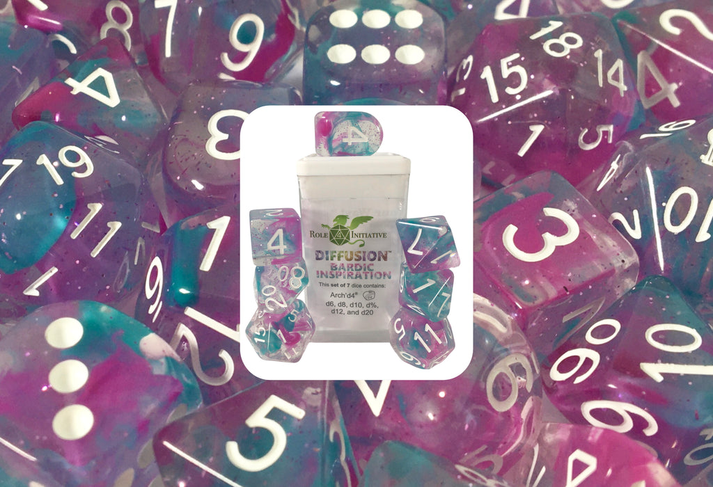 This set of 7 dice is part of R4I's Classes & Creatures collection which has a thematic color design representing an iconic RPG character class and includes Arch'd4, d6, d8, d10, d%, d12, and Balance'd20. Please note that these sets contain all numbers and differ from our Special Reserve editions that contain symbols. Role 4 Initiative high-quality dice average about 25% larger than traditional dice and come in a plastic display box. The Arch'd4 is a uniquely shaped die that features large top-face numbers and is easier to read, pick up, and roll. The Balance'd20 has a unique arrangement of numbers so that any 5 adjacent sides add to either 52 or 53 to ensure the most even distribution of outcomes.