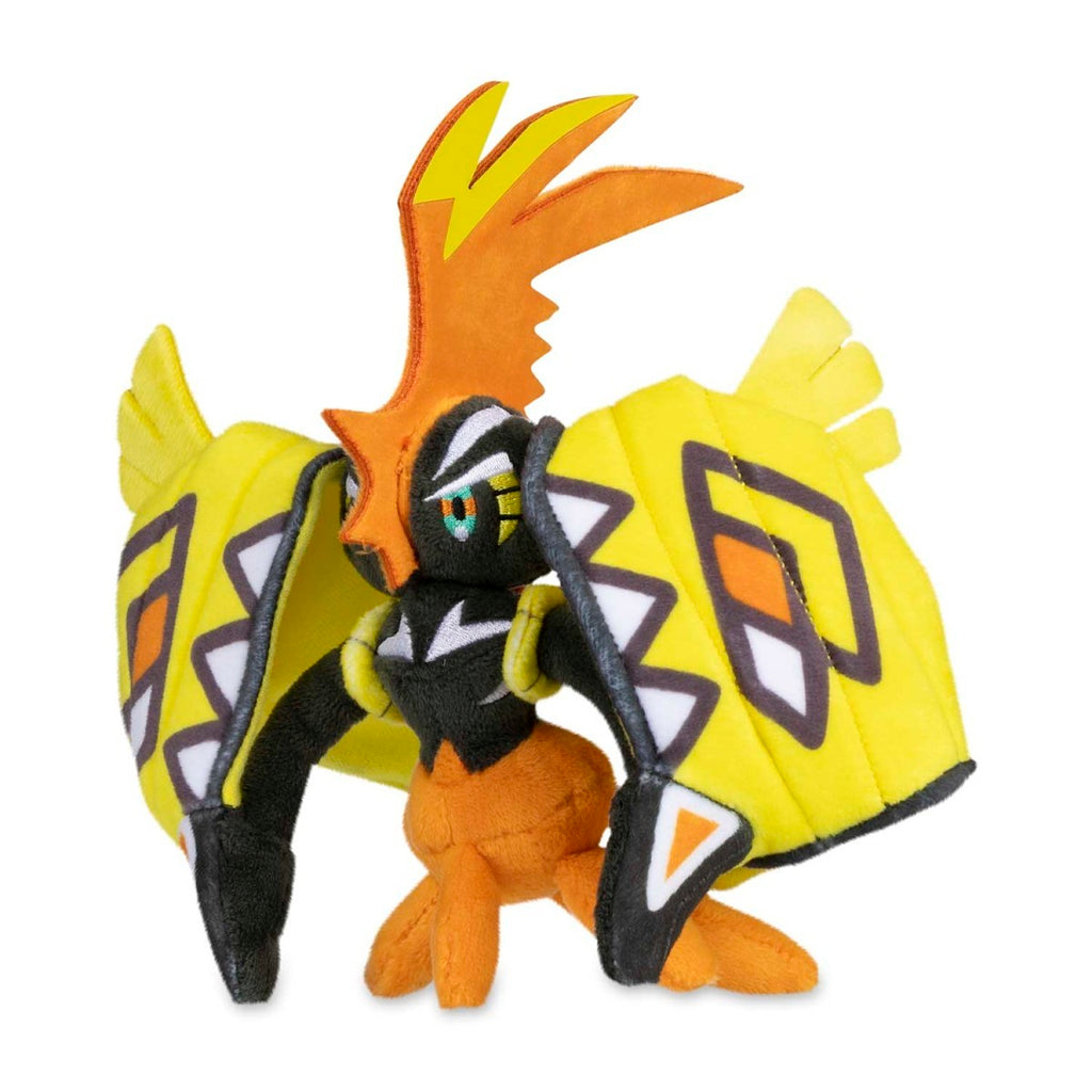 The Tapu Koko Pokémon Sitting Cuties Plush is weighted with microbeads, so it sits up when you prop it against a flat surface. This palm-sized plush is a fun, charming way to show off a favorite Electric- and Fairy-type Legendary Pokémon originally discovered in Alola!